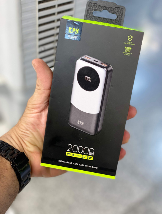 پاوربانک ۲۰۰۰۰ میلی آمپر KPS مدل KPG-202 فست شارژ دو خروجی با نمایشگر LED