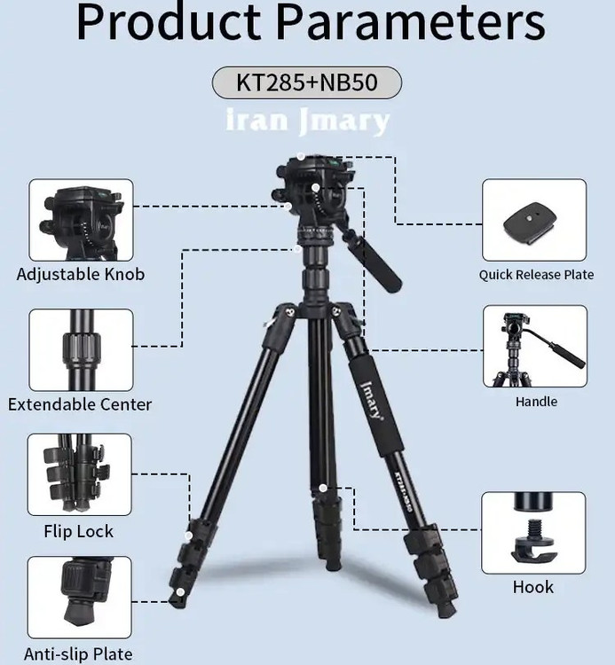 Jmary KT285+NB50 with Hydraulic Head Professional Camera Tripod