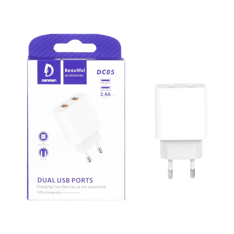 شارژر دیواری 12W دو پورت DENMEN مدل DC05 - سفید